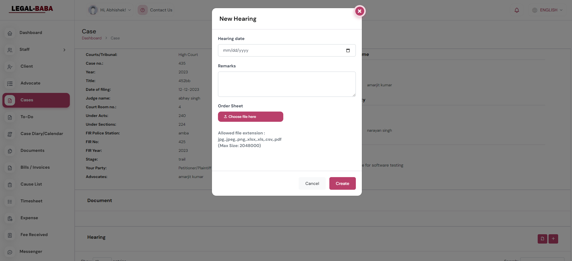 - Expense Management: Track and manage expenses related to cases, including court fees, travel, and administrative costs.