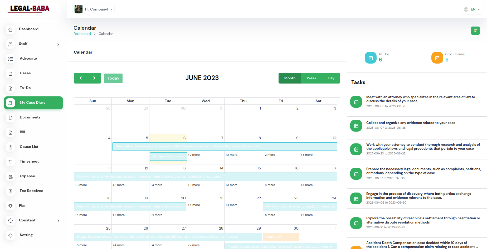 - Appointment Scheduling: Schedule and manage appointments, court dates, and deadlines.